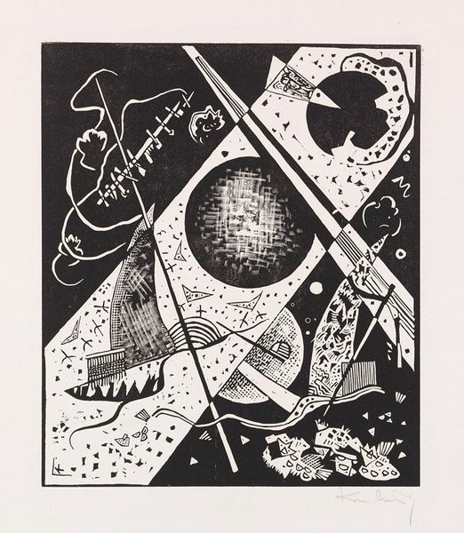 Curator: Look at this striking graphic work by Erté entitled “The Zodiac, Aries.” Though undated, its bold lines and geometric shapes clearly situate it within the Art Deco movement. What are your initial thoughts? Editor: I’m immediately drawn to the dynamism of this piece! The vibrant red figure lunging forward against that dramatic black backdrop, it feels very powerful and assertive. Is that intentional, do you think, playing into typical Aries symbolism? Curator: Precisely. Erté’s work often engaged with symbolism, and here, Aries, the ram, is represented as a dynamic, almost heroic figure, wielding a sword. Observe how he also incorporates astrological and numerological references, like the repeating days of the week and number formations which frames the figure. This interplay emphasizes themes of destiny and cosmic forces influencing individual identity. Editor: I see the ram glyph, cleverly integrated into the flaming terrain near the figure's feet. And his shield—that geometric design is captivating, though the colour scheme is so striking against the earthy colour palette! I also note that both the star formation and what is being held on the extended hand of the figure have geometrical elements. Is this to draw away from making religious inferences? What a powerful visual metaphor! Curator: The figure is set against a dual landscape with flames depicted on the right, contrasting against the cosmos on the left, but even there, it is interesting to note the absence of any celestial figures that would indicate other established cosmologies, particularly those that could indicate organized religion or myth. This resonates with modern considerations of identity politics that deconstruct traditional hierarchical systems. Editor: So it avoids explicitly defining power structures, and places value instead on the idea of destiny? Perhaps it hints at a shift in values influenced by both emerging science and technology? Overall it gives the piece a very unique visual language. It definitely offers food for thought! Curator: It certainly does, by embracing the idea of shaping one's destiny within the vast astrological context, the visual design subtly calls to question ideas surrounding tradition and modernity. Editor: Absolutely, Erté manages to blend historical symbolism with forward-thinking perspectives in a truly visually appealing way. I have found that Erté’s use of symbolism is both intriguing and multifaceted.