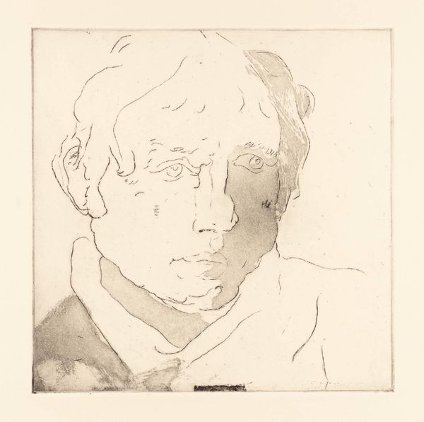 Curator: Before us is "Result of 20 Years of Rock and Roll," a print by Marvin Hayes, meticulously rendered with graphite and engraving. What's your initial reaction? Editor: Bleakness. The tight hatching creates this oppressive feeling, amplified by the subject’s tired eyes. The face fills the entire composition, leaving no room to breathe. It's intense. Curator: The work excels in its obsessive detail. Hayes employs dense cross-hatching to model the face. Look at the tonal range he achieves through varied line weights and densities, effectively manipulating light and shadow. It has superb formal command. Editor: I'm drawn to the symbolism in the title. "20 Years of Rock and Roll." The man’s face embodies the potential toll of that lifestyle – weariness, perhaps disillusionment. The lines etching his face are not just aesthetic choices, but represent years of stories etched onto the skin. Curator: A semiotic reading could certainly interpret those etched lines as markers of time and experience. But I'm more captivated by how the sheer repetition of line builds volume and creates surface texture. It becomes almost sculptural in its effect. The deviations from linearity serve to reinforce a kind of formal disruption, playing havoc with depth. Editor: Disruption definitely. The deep-set eyes are almost hidden in shadow. Rock and roll has always been tied to mythology, hasn't it? It could suggest sacrifice. This man might be an Orpheus figure, descending into the underworld. There is something Promethean, almost tortured about the gaze, that may appeal to contemporary anxieties. Curator: Your reading offers a rich interpretation, yet for me the true mastery of the work resides in the technique. The unwavering commitment to a consistent method builds its power and creates this absorbing surface. Editor: And ultimately, those aesthetic choices serve to underline a symbolic meaning about aging, disillusionment, and rock and roll itself. Both powerful, formal elements, and also powerfully laden culturally. Curator: Indeed, whether one focuses on technique or iconography, "Result of 20 Years of Rock and Roll" proves a compelling, memorable piece. Editor: A stark reflection of rock and roll's impact, both personally and culturally.