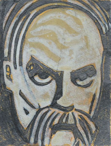 Curator: What a visceral piece, wouldn't you say? The woodcut titled "Figuur met geopende mond" or "Figure with Open Mouth" by Maurits de Groot. The Rijksmuseum places its creation sometime between 1890 and 1931. It’s a striking example of early Expressionist printmaking. Editor: "Visceral" is right. It's all mouth, eyes, angst… Feels like Munch's "The Scream" just...deconstructed, and crammed into a much smaller space. You can almost hear the silent yell. Gives you the chills, doesn’t it? Curator: Absolutely! Expressionism aimed to depict subjective emotions, and the stark contrast in the woodcut amplifies that feeling of raw emotion. Notice how de Groot employed those bold, unflinching lines to define the face. The open mouth motif itself is incredibly potent; traditionally, open mouths symbolize vulnerability, speech, or even a kind of primal scream as you suggest. This piece fits into the broader movement of German Expressionism that wrestled with alienation and the anxieties of modernity. Editor: The distortion is fantastic! Those exaggerated features practically leap off the paper. And is it me, or does the roughness of the woodgrain sort of...enhance the rawness? It isn’t a polished scream; it’s guttural, almost animalistic. There's such powerful immediacy in its roughness. Curator: Woodcut as a medium has a rich symbolic association with truth-telling and bearing witness, especially during this historical period. Think of Käthe Kollwitz’s woodcuts during World War I and its aftermath. So I'd suggest that beyond just personal anxiety, the gaping mouth can also be read as an outcry against a perceived social ill. Editor: Well, whatever it's railing against, it's hitting the mark. Looking at it makes me reflect how much we all hide and compress our own messy feelings, every day. It's a handy reminder that it’s okay to unleash our personal… "inner woodcut," so to speak. Curator: It certainly is a resonant visual cry. In this concentrated burst of energy and emotion, de Groot really offers us a chance to access, or even reflect on, the unspoken anguishes we often conceal beneath the surface. Editor: I'll say. Art as primal therapy, maybe? Makes you want to find your own block of wood and just... wail.