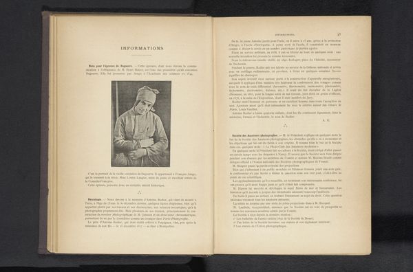 Curator: What a strikingly melancholic image. There’s a softness, almost a sepia-toned longing, isn't there? Editor: Indeed. Let’s contextualize this for our listeners. Here we have "Portret van Charles Puttemans," a photograph dating to before 1898. It appears to be an albumen print, potentially affixed to a textile backing of sorts. We don't have specifics about its origin or creation beyond that. Curator: The framing emphasizes the figure, isolating him from context. Even the ornate patterns on his jacket contribute to an overall sense of constraint. It's as if he’s weighed down by expectation, perhaps? Editor: I see that. Looking at it through a historical lens, studio portraiture of this era often served as a declaration of social standing. His carefully chosen attire, the crispness of his collar, these were signifiers of bourgeois identity. The act of commissioning a photograph itself spoke volumes. Curator: Right, it becomes almost a symbolic object then. Beyond merely depicting his likeness, the portrait projects ambition, orderliness, respectability... virtues cherished in that society. Do you perceive hints of vulnerability beneath the carefully constructed surface? Editor: I'm struck by how this single image distills a much larger set of cultural dynamics: photography’s ascent as both a medium and a commodity, the solidification of class structures, the public performance of self. Curator: To me, the very choice of the photographic process--a then modern technology--hints at an underlying ambition and optimism that coexists with that rigid structure of display. Editor: Precisely. The constraints you felt are indeed there; this image shows us much more than simply Charles Puttemans! Curator: A powerful glimpse into a life lived within very specific social constraints. Editor: Absolutely. Art provides unique insight, helping to understand its specific moment.
