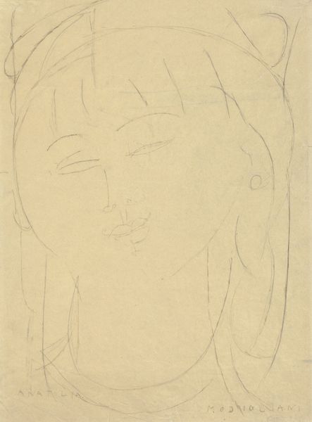 Here's a drawing, an outline of the female image by Hryhorii Havrylenko. With what, I wonder? Pencil? Ink? A very light touch. Look at how Havrylenko has distilled a face into the barest, most essential lines. There's something deeply satisfying about this process, as if he's trying to capture the very essence of form. The texture of the paper plays a big role here, doesn't it? The slight roughness underneath the delicate lines. It is not a blank canvas. There is something written at the bottom of the page that disrupts the simple image. The line that makes the nose is so simple, barely there. It manages to convey so much with so little, like a whispered secret. This reminds me of Giacometti, how he could evoke a whole world with just a few strokes. There's a sense of something unfinished, inviting us to complete the image in our minds.