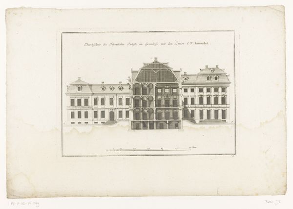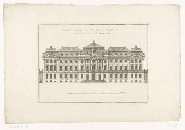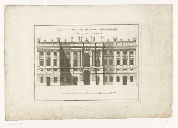 Johann Georg Ringlin created this rendering of "Herenhuis vanaf de tuinkant gezien" in pen and black ink, now held at the Rijksmuseum. The linear precision and symmetry immediately strike the eye. The facade of the Herenhuis is presented with meticulous detail, its architectural elements carefully delineated. The even distribution of windows and the balanced arrangement of the building's wings reflect a structured, almost mathematical approach to representation. This emphasis on order invites a semiotic reading of 18th-century values, where rationality and control were prized. Yet, the drawing also reveals subtle nuances. The play of light and shadow, achieved through delicate hatching, introduces a sense of depth and texture. Consider how Ringlin uses the conventions of architectural drawing to engage with philosophical ideas about space and perspective. The structure is not merely a building but a statement of Enlightenment ideals. This ink drawing encourages us to interpret the very lines and forms as cultural codes, open to ongoing dialogue and renewed appreciation.