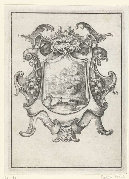 This emblem, featuring a crab and butterfly, was made by Hans Holbein the Younger using the printmaking technique of engraving. This involved meticulously incising lines into a metal plate, which would then be inked and printed. Look closely, and you’ll notice the crisp precision of the engraved lines. The stark contrast between the black ink and the white paper gives the image a graphic punch. The design itself, with its symmetrical composition and symbolic imagery, speaks to the broader cultural context of the Renaissance. The crab and butterfly motif, framed within an ornate cartouche, probably carried allegorical meaning for viewers at the time. It demonstrates Holbein’s mastery of a demanding process, one that required not only technical skill, but also a deep understanding of visual language. By considering the materials and making of this emblem, we appreciate how printmaking enabled the wide distribution of images. This engraving testifies to the value placed on craftsmanship, design, and the power of visual communication.