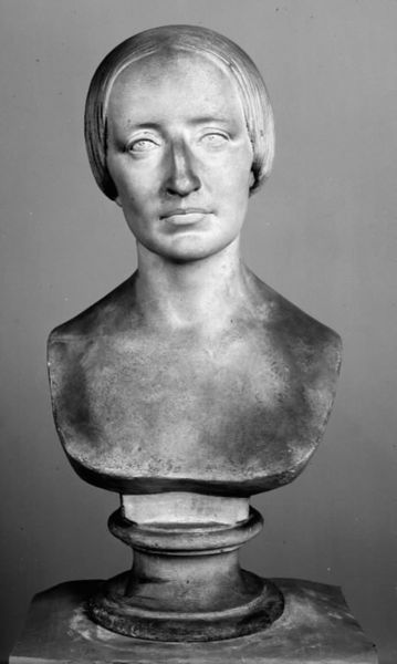 This is a marble bust of the Duchess of Montebello, made by H.W. Bissen, a Danish sculptor, most likely in the mid-19th century. Bissen was part of a generation of artists who looked to classical antiquity for inspiration, a style which was promoted by the art academies of the time. Note the idealized features, the smooth skin, and the serene expression. These are all hallmarks of neoclassical sculpture. But consider the social context in which this work was made. Who was the Duchess of Montebello? Why was she considered worthy of being immortalized in marble? As the sitter was a member of the European aristocracy, the bust reflects the values of a society in which status and lineage were highly prized. The act of commissioning a portrait bust was itself a display of wealth and power. To truly understand this work, we might delve into genealogical records, historical accounts, and perhaps even the Duchess's personal correspondence. Only then can we fully appreciate the social and institutional forces that shaped its creation and reception.