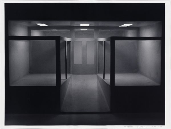 Curator: Lewis Baltz created "Park City 93" in 1979, a gelatin silver print, part of his series that captured the stark, almost desolate landscapes of Park City, Utah, during its development as a ski resort. Editor: Wow, it’s bleakly beautiful, isn’t it? Like a stage set for a minimalist play. All that bare drywall, that gaping, dark fireplace… it's kind of haunting. Curator: Exactly. Baltz's work in Park City is an indictment of unchecked urban sprawl and the commodification of nature. The stark monochrome and industrial subject matter confront the socio-political context of land development. Editor: I get it. It feels very 'anti-postcard'. I mean, you expect to see these grand, snowy vistas, and instead you get... this. This skeletal promise of something luxurious. A shell. Is that supposed to be a fireplace? It feels more like a portal to somewhere...unfinished. Curator: That contrast is intentional, inviting the viewer to question not just what we see but what we don're see – the environmental impact, the displacement, and the inherent inequalities baked into such developments. He does this consistently in his work. It pushes us to confront uncomfortable truths about progress. Editor: Absolutely. I feel a tension between the cold, hard geometry and this odd, underlying sense of… expectation. Like this is the chrysalis of a really tasteless McMansion. It's almost humorous, but there’s this real discomfort humming underneath. Curator: Baltz avoids romanticism, opting for clinical, objective views, echoing New Topographics movement concerns regarding human impact on the landscape. The choice to use monochrome emphasizes the bleakness. Editor: It totally works. Thinking about it, this image makes me feel complicit somehow. Like I’m implicated in the march of development whether I like it or not. It’s clever stuff. Curator: Indeed. It is about challenging the viewer to acknowledge the power structures embedded in everyday environments. Editor: You know, I came in here wanting landscapes, and now I'm leaving thinking about urban planning and the emptiness of luxury. Pretty powerful stuff for a black-and-white photo of a… well, a half-finished wall. Curator: Precisely. Baltz encourages us to dissect and analyze our role within larger societal structures. His photos capture the essence of the modern dilemma, questioning our relationship with progress and its repercussions.