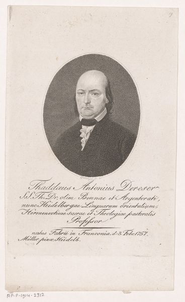 Antoine Maurin created this print, "Portret van George Canning", using lithography. Notice how the composition is structured around a play of light and shadow. The subject, George Canning, emerges from a dark background, his face illuminated to draw our focus. Maurin uses a limited tonal range, primarily blacks, whites, and grays, achieving a striking contrast that defines Canning’s features. The direction of Canning’s gaze and his posture contribute to the overall sense of controlled authority, reinforced by the letter he holds, a symbol of his office. The textures are carefully rendered through lithography, from the smoothness of Canning’s forehead to the intricate details of his ruffled collar, adding depth to the portrait. Through these formal elements, the print functions as a carefully constructed representation of power and intellect. Consider how the composition of light, texture, and line contribute to the construction of Canning’s public persona, a carefully crafted image intended to convey statesmanship.
