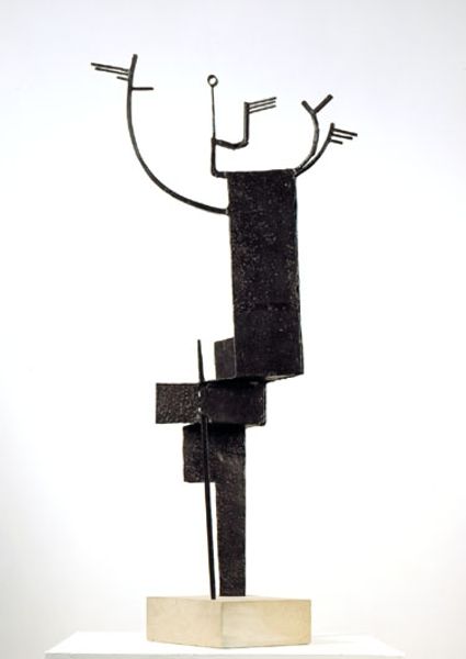 David Smith made this Sentinel I sculpture out of welded steel. It's like a sketch in space, isn’t it? You can almost feel Smith figuring it out as he goes, the way the lines of steel reach and balance, like a drawing that's come to life. It's fascinating how the texture becomes the drawing – the rough edges, the places where the metal has been worked and joined, they all contribute to this raw, honest feeling. Look at the base of the sculpture, where the wheel is attached to the base. There's something about how it's been welded there, rough and ready, that brings a sense of honesty and effort to the piece. Thinking about other artists who might have been an influence, I can’t help but think of Picasso, with his playful way of breaking down forms and reassembling them. But where Picasso used paint, Smith used steel, turning sculpture into a kind of three-dimensional collage. It all comes from somewhere and gets turned into something new, right?