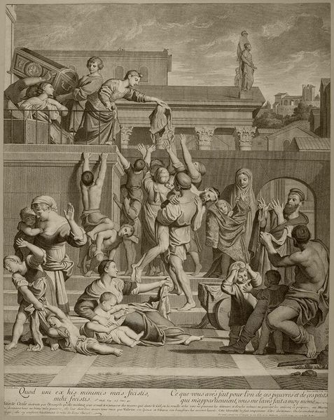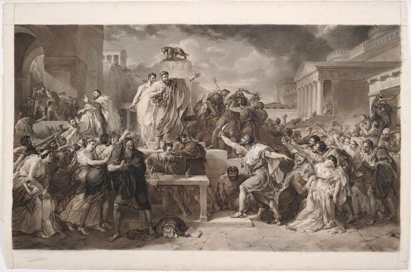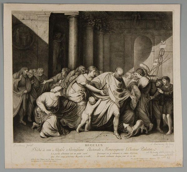 Giovanni Battista Piranesi created "Brennus and Camillus" as an etching, capturing a pivotal moment steeped in Roman history and national pride. Piranesi, living in 18th-century Italy, was deeply influenced by the rediscovery of classical antiquity, fueling a fascination with the grandeur and moral lessons of the Roman Empire. The artwork portrays the Gallic chieftain Brennus, weighing Roman gold, and the arrival of Camillus, a Roman hero, who dramatically intervenes. It’s a scene laden with themes of justice, honor, and the clash of cultures. Piranesi’s Rome wasn’t just stones and monuments, but a stage for moral dramas. The emotional weight of the image is palpable, particularly in the figures of the distressed citizens and the resolute stance of Camillus. Piranesi uses architecture to stage the scene, contrasting Roman order with Gallic aggression. It makes me think of our own struggles with power, identity, and the narratives we construct about ourselves and others. The print doesn't just depict history; it invites us to reflect on how we define our values in times of conflict and cultural exchange.