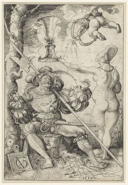 Wenceslaus Hollar created this engraving titled 'Allegory of King Charles II of England'. It is a work filled with symbolism reflecting the complex political landscape of its time. The image is a carefully constructed piece of propaganda, designed to legitimize Charles II’s restored monarchy. We see Charles II standing triumphantly above a defeated dragon, a traditional symbol of evil and chaos, representing the turmoil of the English Civil War. But Hollar goes further. Consider the female figure slumped next to the dragon, likely representing Britannia, now freed from the dragon’s oppression. The image promotes the idea of Charles as a divinely appointed ruler, sanctioned to restore order and justice after a period of upheaval. This piece is not just a political statement. It also invites us to consider the weight of expectations placed upon individuals who are thrust into positions of power during transformative times. Hollar captures that moment, leaving us to ponder the human dimensions of leadership amidst political change.