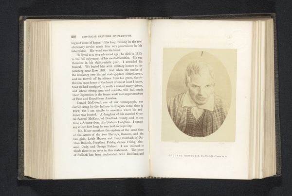 Editor: So this is a portrait of Henderson Gaylord, dating from before 1873. It's an albumen print, so a photograph presented like a portrait. I'm immediately struck by how...contained he seems. It’s very formal, very posed. What do you see in this piece, beyond just a historical record? Curator: Beyond its immediate visual presence, this portrait offers a fascinating entry point into exploring constructions of masculinity and power in the 19th century. We see Gaylord framed by a very controlled setting – the oval crop, the dark suit. How does this reinforce societal expectations of men of that era? Editor: Well, the dark suit is definitely standard for the time, signifying a certain level of seriousness and professional status, right? Curator: Exactly. And consider the gaze: direct, but not confrontational. It speaks to a particular brand of stoicism and self-assurance that was often equated with leadership. How do you think that image plays into the broader narratives of the era surrounding industrialization and the development of a capitalist economy? Is this an 'everyman,' or is the image intended to evoke something more than that? Editor: I hadn't considered it that way, but now I see how it contributes to the construction of this very proper image! Almost like a brand…a personal brand before personal brands existed. He looks like he’s embodying success. Curator: Precisely! The image also brings up questions regarding representation and access. Who gets to be memorialized through portraiture, and what stories remain untold? Editor: It's like the portrait is a silent participant in a larger power dynamic. Looking at the image differently, it makes me think about whose stories get to be amplified and remembered in the first place. Thanks for that insightful reframing!
