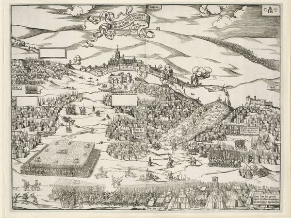 This print, made in 1591 by an anonymous artist, shows the relief of Knodsenburg. It’s made from an engraving, a printmaking process where lines are cut into a metal plate, which is then inked and pressed onto paper. Look closely, and you can see how the material influences the image. The sharp, precise lines of the engraving create a detailed, almost map-like view of the battle. This technique, requiring skill and time, was crucial for disseminating information in the 16th century. Engravings like this played a key role in shaping public opinion about political events. The print illustrates a complex military operation, but also speaks to broader social issues. It’s a product of its time, reflecting the economic and political power struggles of the era. The labor-intensive process of engraving contrasts with the mass-produced nature of prints, highlighting the tension between craft and industry. Recognizing these material and historical aspects allows us to appreciate this artwork not just as a depiction of war, but as a reflection of its society.