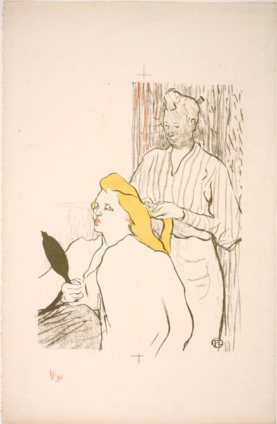 This playbill for the Théâtre Libre was made by Henri de Toulouse-Lautrec in the late 19th century, using lithography. It’s an interesting process; the artist draws on a flat stone with a greasy crayon, then treats the stone so that ink adheres only to the drawn areas. Toulouse-Lautrec was fascinated by the behind-the-scenes labor of Parisian nightlife. Here, he depicts a private moment of grooming. Look closely, and you’ll notice that he used thin, expressive lines, capturing the textures of hair and fabric with remarkable economy. The soft, muted colors add to the intimate atmosphere, as if we are seeing a fleeting glimpse into the lives of these women. But it’s not just a pretty picture. Toulouse-Lautrec made many of his prints as posters. Lithography was a relatively inexpensive method that aided the rise of mass culture. It enabled artists to reach a broad audience and to make a living through commercial work. By embracing this medium, Toulouse-Lautrec blurred the lines between high art and popular culture, challenging traditional hierarchies.