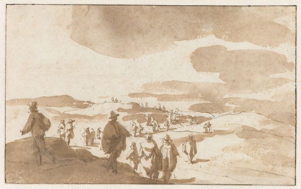 Hercules Brabazon Brabazon likely created this watercolor painting, Along the Shore, in the late nineteenth century. Brabazon’s use of watercolor gives the painting its distinctive translucent quality. It wasn't exactly a common or widely respected medium at this time. Watercolors dry quickly, and this is a clear example of impressionistic, spontaneous landscape art, made en plein air, or outdoors, as opposed to inside the studio, with multiple layers of detail. The painting is characterized by fluid brushstrokes and subtle gradations of tone. We can also see the texture of the paper support through the pigment. Brabazon’s technique reflects an interest in capturing the fleeting effects of light and atmosphere, a far cry from the kind of highly finished paintings that were favored by institutions like the Royal Academy at the time. Understanding the materiality of the watercolor, as well as the artist’s process, is key to appreciating the artwork's aesthetic and cultural significance, pushing us to reconsider traditional hierarchies within the art world.