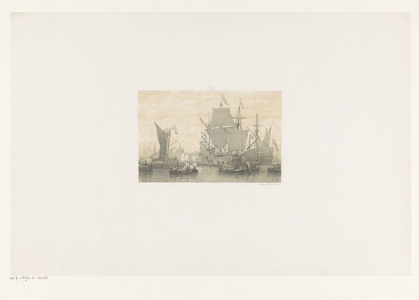 Curator: Here we have Johannes Huygens's "Zeilend vissersschip," or "Sailing Fishing Boat," which he produced sometime between 1843 and 1911. It's a pencil drawing currently held here at the Rijksmuseum. Editor: There's a compelling immediacy to this sketch. It feels almost like a fleeting impression captured during a moment on the water. The movement, especially, is very evocative. Curator: Indeed. Consider how this work exists within a broader discussion around the depiction of labor. The artist is documenting the realities of work on the sea, reflecting the societal interest in these activities during this period. It gives voice to the labor involved in marine work. Editor: It makes me consider the romanticization of maritime life at the time, but does this drawing truly portray their lived experiences, or does it offer another view framed through an elite perspective? Is Huygens partaking of, and perhaps promoting, that very ideal? Curator: That's an essential point. We have to look at who this work might have been created for. Was it meant to capture the raw existence of the fishermen, or for a patron who wanted to bring the sublime into their parlour? What does the sketch say about labor's relation to leisure? Editor: Even the choice of pencil lends itself to an immediacy that almost positions it as preliminary or personal work. Did Huygens intend for the drawing to stand as the final piece, or serve merely as a step for later work? Curator: And who, ultimately, does it serve? We can investigate how this relatively small drawing intersects with larger economic and political conversations from the late 19th century. By exploring its role in documenting and, potentially, shaping our understanding of the maritime culture during this time, and how it fits into the contemporary perspective. Editor: It brings the artwork and those that view it face-to-face. Thanks for giving context for us to pause, reflect, and respect its cultural contribution. Curator: A single artwork always connects to complex cultural narratives. Thanks for joining me as we highlighted some points to consider with Huygens's beautiful work.