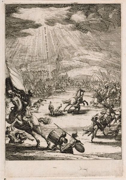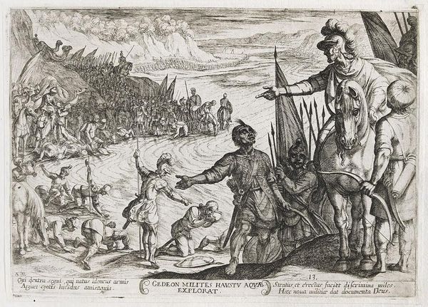 Editor: So, this engraving is "Amstel groet de bewoners van Amsterdam," made in 1723 by Jan Goeree. There's a lot happening—nymphs, river gods, the city in the background… It feels like a very staged celebration of Amsterdam. What's your take? Curator: Well, it's crucial to understand the material conditions of this image. It's a print, intended for mass dissemination. These allegories were commonly commissioned by the city government. I see it less as simple celebration and more as manufactured consent. Editor: Manufactured consent? What do you mean? Curator: Consider the cost of the copper plate, the engraver’s labor, and the intended audience. This wasn’t meant for the elite, but rather to circulate amongst the burgeoning merchant class and instill civic pride, even propaganda, by visually connecting prosperity to Amsterdam. Editor: That's fascinating. The way the artist used these mythological figures... is that connected to your interpretation? Curator: Absolutely. These are all signifiers. The river god Amstel represents Amsterdam's lifeblood: trade and resources. The nymphs are commodities being exchanged. Even the specific engraver, Goeree, reflects the labor practices and market for printed images in Amsterdam at the time. How would it change your thinking if this exact design was used by various engravers who paid for the design? Editor: It puts a different light on it. The value isn't in the artist's expression alone but in the entire system of production and circulation. This was meant to shape public opinion. I’m viewing it now less as art and more like a political tool that has aesthetic and historic dimensions. Curator: Precisely! We have to always ask "who is producing, for whom and with what means?" It moves the artistic assessment away from inherent creative insight and makes it, at the very least partially, a result of material circumstances. Editor: I appreciate your thoughts. Seeing it through a materialist lens is quite revealing! Curator: And considering how things are made shifts your attention to thinking about distribution as something intentionally fabricated. Thank you for your engagement!