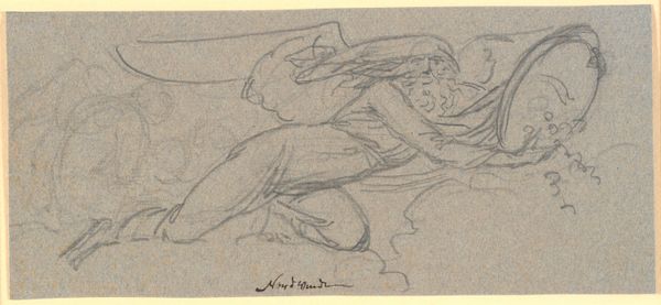 Editor: This is Kenyon Cox's "Sketch for Evening," a pencil drawing. The figure's pose is so graceful, almost languid. What do you make of it? Curator: Cox's idealized nude is interesting given his historical context. It was made during a time of intense debate about women's roles and representations. How do you think this image participates in those debates? Editor: I hadn’t thought of that. Maybe it's about objectification? Or is it an attempt to reclaim the female form? Curator: Perhaps both. It reflects anxieties around female sexuality and the male gaze, but also a desire to elevate the female form to an allegorical ideal. Editor: That’s a lot to consider. I'll never look at a nude sketch the same way again. Curator: Exactly! Art invites us to question and engage with the complexities of our cultural narratives.