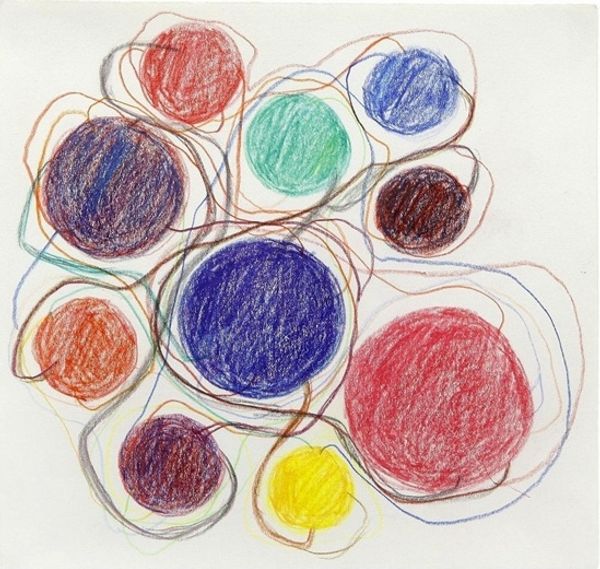 Atsuko Tanaka made this untitled work with colored pencils and graphite, creating a world that feels both playful and deliberate. The surface is alive with scribbled circles, each filled with a different hue, all jostling for space, interconnected by wandering lines. It’s a real testament to art-making as a process. It's like Tanaka’s mind at work, ideas bouncing around and connecting in unexpected ways. You can almost feel the pressure of the pencil on the page, the way she layers the colors to build up these rich, vibrant orbs. Look at the bottom left circle; it’s a riot of blues and purples and yellows, a sort of microcosm of the whole piece. And the way the lines connect the circles is like a network of thoughts, a flow of energy. Tanaka’s work reminds me a bit of Hilma af Klint, especially in the way both artists use abstraction to map inner landscapes. Ultimately, it’s a reminder that art doesn’t need to be pinned down; it can be a space for endless exploration and interpretation.