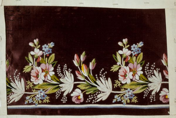 This costume sample, made by an anonymous artist, offers us a glimpse into the world of fashion and identity. In times past, garments declared social status, gender roles, and cultural affiliations. Before industrialization and mass-produced clothing, textiles and embroidery were precious artistic resources. This fragment hints at the artistry and labor involved in creating clothing, reflecting the lives and skills of the artisans, most likely women, who produced such detailed work. The floral motif, with its delicate execution, may reference the natural world, idealized femininity, or perhaps coded meanings of flowers in different cultures. The level of craftsmanship evident here is incredibly intimate. What stories could be told through this material? What identities were shaped, celebrated, or suppressed through the act of adorning oneself with such finery? It makes you wonder, doesn’t it?