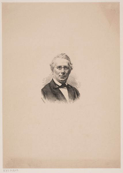 Curator: Immediately, the cool detachment of this figure stands out. Editor: I’d like to introduce to our audience this compelling work: It's a portrait of Guillaume Adrien Gérard van Maanen, crafted sometime between 1851 and 1883. The piece is an engraving by Johan Hendrik Hoffmeister. Curator: "Engraving" highlights a dedication to craft – the physical labor involved in the careful etching... you sense the social standing implicated in a commission like this, the very materiality of power etched into the plate. Editor: Absolutely, the printmaking process lends itself to the distribution of power, class, and status, but I can't help but think about what it means to have one’s image rendered and circulated through these channels. Whose stories get told, and who gets to tell them? Curator: This portrait is a representation of patriarchal power. A stern-faced, suited man stares out, effectively centering him within a socio-political system – you sense the artist operating within very traditional modes of representation, celebrating conventional standards and dominant forces of the time. Editor: Consider, too, the function of reproductive prints like this one: By turning to printmaking to portray its subject, the original’s social agency multiplies; a message can be disseminated further. Curator: And to examine the signs of success he's wearing a medal. It serves as a material signifier of recognition. Medals were used to declare the values of an elite in very clear ways. Editor: You're prompting us to understand it as more than just a portrait. These objects speak volumes about class and social identity. It reminds us that seemingly simple representations can carry very complex cultural codes. Curator: It pushes us to ask critical questions about representation and the mechanisms of power at play. Editor: Looking at this from my angle has definitely enriched my experience with this engraving; hopefully it’s the same for our audience.