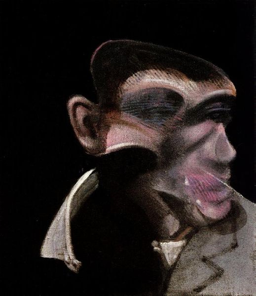 Francis Bacon’s Portrait of Michel Leiris presents us with an image of distorted features emerging from a tenebrous background. The painting’s composition unsettles our expectations of portraiture, evoking a sense of unease. Bacon's radical brushwork dissects and reassembles the face. The vigorous strokes and disrupted lines destabilize any fixed identity, reflecting the post-structuralist interest in the instability of meaning. The interplay of visibility and concealment challenges our perception, creating a tension between what is revealed and what remains hidden. The chromatic intensity with pinks and greys and off whites contributes to the portrait’s emotional depth and the feeling of rawness. Through the use of bold colours and fragmented forms, Bacon's work transcends traditional representation. It becomes a profound exploration of the human condition, questioning the very nature of identity and representation.