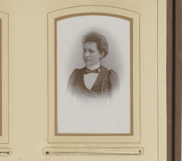 This is a photographic portrait of a young woman, made by Abraham Koorenhoff. Photographs like these were a product of their time, made possible by innovations in chemistry and optics, but also driven by a newly prosperous middle class eager to capture their likenesses. The faintly sepia tone is typical of early photographic prints. The mode of production is key here; photography transformed portraiture, once the domain of skilled painters, into something more widely accessible. While a painter might spend days or weeks on a single commission, a photographer could produce multiple images in a relatively short time. This shift democratized representation, but also altered the meaning of an image. Consider the labor involved: from the production of photographic materials to the photographer's expertise in posing and lighting. By focusing on the material and social context of this image, we can appreciate its place within broader histories of art, technology, and society.