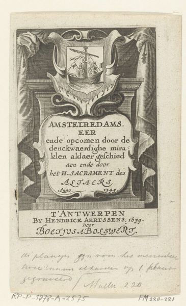 Editor: Here we have Hendrik Jacobsz Soeteboom's "Wapenschild van de familie Van Zaanden," created in 1658. It's a pen and ink sketch, quite small. I find the intricacy of the crest design remarkable, given the tiny scale, almost like a stamp. How do you interpret this work? Curator: This piece speaks volumes about identity and power structures of the time. Heraldry wasn’t just decorative; it was a visual assertion of lineage, land ownership, and, ultimately, authority. Soeteboom’s meticulous rendering, even in a seemingly minor sketch, reinforces the Van Zaanden family's position within the Dutch social hierarchy. What do you think the choice of the pen-and-ink medium says about the work's intended audience and function? Editor: Maybe it was intended for a smaller circle, more personal. I wonder about the text accompanying the crest. Is it significant? Curator: Absolutely. The text likely elucidates the historical claims and familial connections bolstering the Van Zaanden's status. Notice the phrase "oudt geslacht"—"old lineage." That harkens back to a romanticized, often constructed, version of the past used to legitimize present-day power. Consider how families still use symbols and narratives to assert their identity and standing. Editor: It’s interesting to think about heraldry as a form of branding, projecting a specific image. So, even a simple sketch like this becomes a political statement. Curator: Precisely! And in a society undergoing significant social and economic shifts, these assertions of tradition become all the more crucial. This shield is not just a picture; it's an active participant in shaping perceptions of class, privilege, and belonging. Editor: I hadn’t thought about it that way. Looking at it now, the sketch seems much more loaded with meaning than I initially perceived. Curator: That's the beauty of engaging with art from an intersectional perspective! It reveals hidden layers and challenges us to examine the forces shaping not only the art itself but also the society in which it was created.