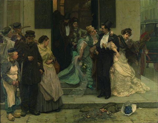 Alfred Dehodencq painted "The Arrest of Charlotte Corday after the Murder of Marat" using oil on canvas. The eye is immediately drawn to a dense crowd swirling around a dark carriage. The loose brushwork and muted palette create a sense of chaos and emotional intensity. Dehodencq uses a dynamic composition to depict the aftermath of a pivotal moment in the French Revolution. The swirling figures, rendered with expressive brushstrokes, embody the public's raw, visceral reaction to the assassination. The use of dark tones, punctuated by flashes of light, creates a dramatic contrast that emphasizes the gravity of the event. The architectural backdrop and the figure leaning out the window adds depth and perspective to the scene. The painting destabilizes fixed notions of heroism and villainy. Corday's arrest is not presented as a triumph of justice, but as a scene of public frenzy. Ultimately, Dehodencq challenges us to question the narratives of power and the complexities of historical interpretation.