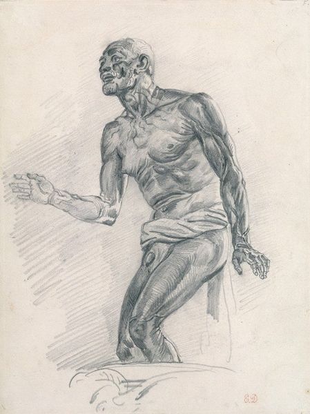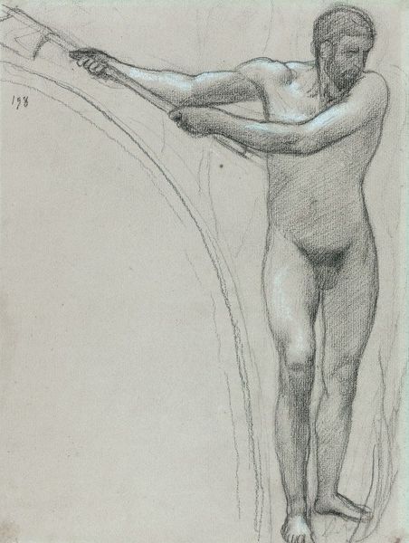 This is Pyotr Konchalovsky's sketch of a female nude, created with decisive strokes in pencil. The stark contrast of dark lines against the bare paper creates a sense of immediacy. Look at how the figure is composed; the subject's gaze is directed downwards, and her arm is outstretched in a gesture that disrupts the traditional pose of repose. The sketch captures a moment of introspection, achieved through the dynamism of the lines. This choice steers away from the static and idealised forms of classical nudes. The composition challenges fixed meanings, inviting us to consider the nude not as an object, but as a subject. Notice the incompleteness of the background, allowing the figure to emerge almost sculpturally from the void. This effect enhances the sense of the body as a site of psychological and physical presence. The sketch becomes part of a larger dialogue about representation, perception, and the destabilization of established meanings.