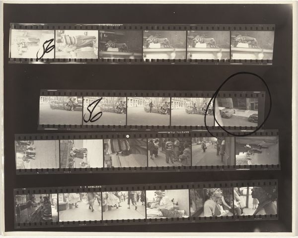 Robert Frank made this photowork, Guggenheim 62/Detroit 16, as a study sheet of different images, it’s hard to know exactly when. It looks like a set of experiments, a set of different scenes and images of figures, presented as a collection. I love seeing into a working process like this. The contact sheet isn't trying to conceal anything; it’s transparent about how it’s been made. You can see some of the frames have been marked or circled. Maybe they interested Frank more than others. Your eye is immediately drawn to them. I find my eye dancing all over this surface, taking in the grit, the grain, the contrasts of light and shadow. Each image is a little world of its own. They remind me a bit of Gerhard Richter's "Atlas" project, a collection of photographs that were source material for his paintings. In both cases, you get this sense of an artist gathering material, piecing together a vision, allowing the possibilities to unfold in front of them. It reminds you that art isn't about making something perfect or resolved but about embracing the messiness and ambiguity of the world.