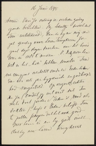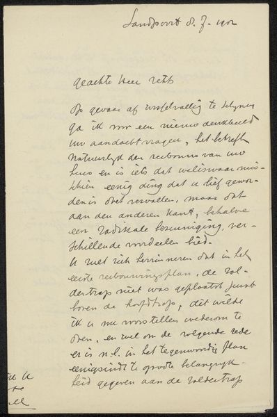 This is a letter titled ‘Brief aan Jan Veth’ by Antoon Derkinderen, handwritten around 1899. Derkinderen was a Dutch artist, deeply embedded in the cultural and intellectual circles of his time. This letter offers a personal glimpse into Derkinderen’s world, his relationships, and his thoughts. In addressing Jan Veth, likely the well-known Dutch art critic, Derkinderen engages in a dialogue that goes beyond mere personal correspondence. It speaks to the artistic and intellectual exchange of the late 19th century. The letter’s discussion of events and acquaintances also hints at the networks of influence and support that artists relied upon. The emotional weight of such correspondence lies in its intimacy. It shows how artists navigated their personal connections alongside their professional lives, revealing the human side of artistic creation.