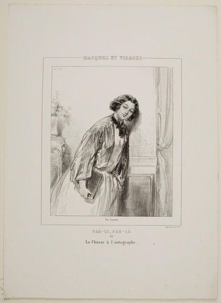 Editor: This is a print by Paul Gavarni titled "Oh! I love French wine very much! An Englishman who does not love French wine . . . is not an Englishman." It looks like an illustration, and I'm struck by how the artist uses light and shadow to create a sense of drama. What do you see in this piece? Curator: It’s intriguing how Gavarni plays with national identity and cultural stereotypes. This image, created in a time of intense nationalistic sentiment, almost satirizes the concept of inherent national traits. The text suggests a rigid definition of Englishness dependent on a specific cultural preference. Could this be a commentary on the arbitrary nature of national identity? Editor: That's a perspective I hadn't considered. So it's less about wine and more about the idea of belonging? Curator: Precisely. Gavarni uses humor to question these established norms, asking us to consider who defines these boundaries and for what purpose. Editor: I learned a lot about the themes of nationalism. Thanks! Curator: Indeed, a deeper look into identity!