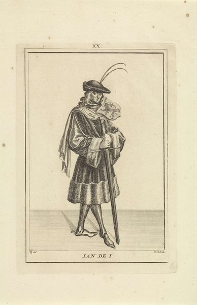 Editor: So, this is a print from 1745, “Portrait of Albrecht of Bavaria, Count of Holland and Hainaut,” by Hendrik Spilman. It's… regal, but also a bit stiff, wouldn’t you say? I’m curious, what’s your take on this portrayal? Curator: It's more than just a regal image, isn’t it? Let's consider the socio-political context. The Baroque style often served as a form of propaganda, reinforcing power structures. How does Spilman use visual cues, like the armor and coat-of-arms, to construct Albrecht’s identity and legitimize his rule? The use of engraving makes me think that these could have been disseminated widely... who were the intended audiences and why would his likeness need to be shared this way? Editor: The engraving, the armour, it definitely projects authority. I suppose, considering the date, this was perhaps created to remind people of their lineage, especially after periods of upheaval? Is the image perhaps reaching back, or legitimising some current claim or assertion through historical precedent? Curator: Exactly. Think about how history paintings and portraits often function not just as records but as arguments. The "accuracy" isn’t the point, is it? Spilman presents a specific version of Albrecht—a powerful ruler linked to a noble past, at a time when the power of aristocracy may have been questioned or threatened by outside forces. We might wonder if this representation is being projected at the expense of others, those not documented, not given the same space in the picture frame, or in society. Editor: So, we need to read beyond just the surface of the image. Look at whose story is being told, but equally who it isn't? Thanks, that shifts how I see it. It's not just a historical portrait, it's a political statement. Curator: Precisely! And by asking ourselves these questions, we begin to unveil the complex web of power, representation, and social narratives that art carries within it. Now consider this new context alongside your first impression…