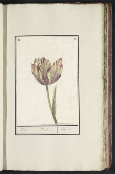 Editor: This is "Tulp (Tulipa)" by Louis De Graeve, created sometime between 1790 and 1814. It's a delicate watercolor and coloured pencil drawing on paper. I'm struck by its scientific quality, but it's also undeniably beautiful. What do you see in this piece? Curator: It’s more than just beautiful. These botanical drawings were often commissioned and collected at a time of intense colonial expansion. The impulse to classify, catalogue, and visually capture plant life directly supported exploitative extraction of resources from colonized lands. De Graeve’s tulip, in that context, participates in a visual language that facilitated a particular kind of power. Editor: I hadn’t thought of it that way. I guess I was focused on the aesthetic aspect. So you're saying this isn’t just a pretty picture of a flower; it's connected to the history of colonialism? Curator: Precisely. Think about who was consuming these images. Often, they were affluent Europeans who may have never even set foot in the regions from which these plants were taken. The tulip becomes a symbol, removed from its original context and placed within a European framework of ownership and control. And we have to consider how this kind of image making affects the communities from which this knowledge was extracted. Editor: That’s… really changed my perspective. I’ll never look at botanical art the same way. Curator: Good. Recognizing these layers—the power dynamics at play, the erasure of indigenous knowledge—helps us to engage critically with art history. Now, do you think the medium itself plays a role in all this? Editor: The delicate watercolour perhaps gives it a sense of refinement, of almost aristocratic appropriation? I can see how the artistic and social contexts are related now. Thanks for expanding my viewpoint. Curator: And thank you, it is essential to keep asking such questions.