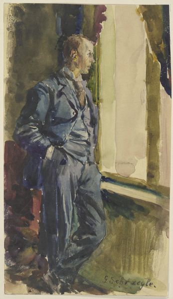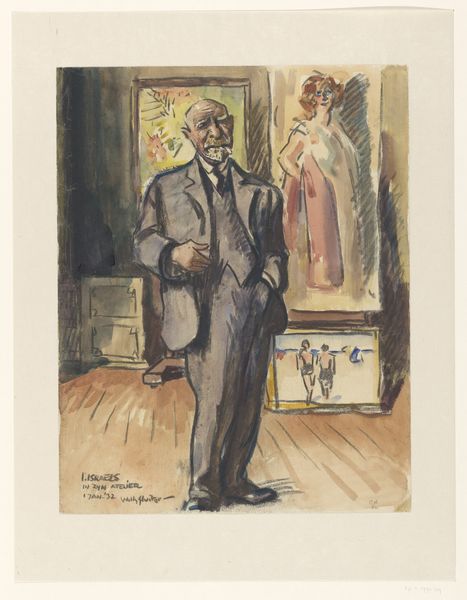 Marie Henriques made this watercolor titled, ‘The Painter Tom Petersen, Sitting on a Porch’ using a delicate and airy palette of muted blues, yellows, and browns. Look at the way the paint is laid down, light washes over textured paper, it is clear that for Henriques, artmaking is about the act of seeing and the way you translate what you see into marks. The translucent quality of the watercolor allows the white of the paper to shine through, creating a sense of light and atmosphere. Notice how the artist uses subtle variations in tone and color to suggest the play of sunlight on the walls, floor, and figure. There’s a passage near the bottom, just below the sitter’s boots, where the color is particularly thin and you can see the paper shining through. It is as if the artist is saying, "Look here, this is where the painting comes from!" Henriques’s work brings to mind artists like Berthe Morisot, with whom she shares a similar interest in the depiction of intimate domestic scenes and a commitment to capturing the fleeting effects of light and color. Art is a conversation, and Henriques is speaking here of the quiet, interior moments of life. It is open to interpretation, like a half-finished thought.