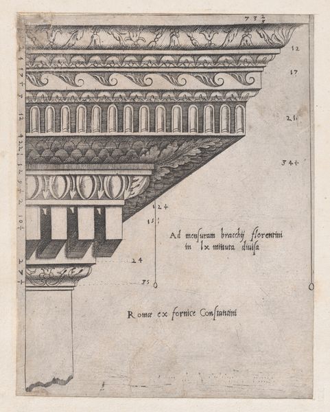 Curator: Let's discuss Melchior Lorck’s etching, "A Sarcophagus in Silivri," created sometime between 1560 and 1564. It's a rather intriguing piece within his broader body of work, capturing a funerary monument with the cityscape receding behind it. Editor: It's arresting, I'll give you that. The severe geometry of the sarcophagus against the feathery etching of the landscape creates an odd tension. The whole composition feels stiff, yet strangely vibrant due to the contrasting textures. Curator: Indeed. What’s particularly fascinating is the artist's engagement with Ottoman culture during his time as an envoy in Constantinople. Lorck's depiction challenges prevailing European Orientalist views. Editor: Challenge, yes, but through a very specific visual language. Notice the ornamentation—the repeated circular motifs, the dense, almost fabric-like texture. It's not a realistic depiction but an interpretation, playing with patterns and lines, an intellectual exercise using visual tools of contrasts. Curator: Absolutely, his approach was less about direct transcription and more about conveying cultural observations. He presents this Ottoman monument not just as an artifact, but in its architectural context within the social and political landscape of the time. The text inscribed along the bottom further hints at the place of the sarcophagus and the patron that commisioned it. Editor: Yet the lack of deep shading flattens the object, removing depth in exchange for an elaborate surface. The image, for me, becomes about this play with surfaces, rather than the actual scene. See how the clouds mimic the rounded forms of the patterns found in the object below. Lorck created visual rhymes. Curator: That's a great point about the lack of shading. We could consider Lorck's intentions through the lens of patronage. His patron probably desired detailed representations suitable for scholarly audiences invested in classical architecture. This work exists because of social demand for a specific mode of visual engagement. Editor: It's a study in contrasts, in a sense. The object itself becomes secondary to how it's translated through line and form. Curator: It all contributes to a nuanced statement on cross-cultural relations and the politics of representation in the 16th century. Editor: It seems we’ve unearthed compelling and diverse aspects, haven't we? Curator: We certainly have. It shows how complex even a seemingly straightforward visual record can be when examined from multiple angles.