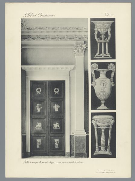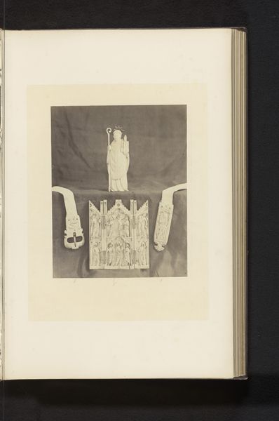Curator: So, what's catching your eye first here? It's labeled as "Composition of Plaster Ornaments from the Atelier of J. Delbove, Brussels, Belgium," dating roughly from 1860 to 1882. Editor: Hmm, it's strangely compelling, this photographic catalog of plaster bits. It has a ghost-like presence... Makes me think about forgotten grandeur and the ephemeral nature of taste. Do people even *do* this kind of ornamentation anymore? Curator: Well, that’s part of its historical significance. This image acts almost as a sales catalogue. J. Delbove’s workshop would have offered these various plaster components for architectural and interior decoration. They speak to a moment of booming industrialisation when even traditionally hand-crafted elements could be ordered "off-the-rack." Editor: Ah, so it’s all about democratization through production. Still, something about the muted tones—the photo’s aged sepia feel, combined with the blank stares of those tiny cherubs—is giving me a very potent melancholy! They feel ripped from some grand scheme. Curator: And consider how photographs became vital in disseminating and standardizing designs. Architects and builders far and wide could access and replicate these motifs. Think about the role museums play in preserving and displaying plaster casts...It connects directly with how taste is disseminated! Editor: Makes you consider how ornament styles are marketed like seasonal clothing nowadays. Trends and branding—the whole history, really. Even those little cupids… did you see the chubby one holding something? A little banner perhaps? What secrets do those walls hide... Curator: A banner, or maybe an architectural detail of its own. Exactly! These weren't just isolated art pieces; they were cogs in a grand decorative machine. And this photograph helps us unpack the aesthetic ambitions and production realities of a bygone era. Editor: Yeah. This is more than decoration—it’s a reflection of our past obsession with beauty, how we shape and consume spaces. I keep going back to how mournful these bits appear and then there’s you, going "democratization!" Such is art: deeply confusing to one or perhaps it will all coalesce into that something "meaningful," but on *our* time, and not a curator’s clock!