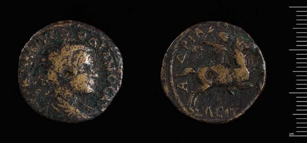 Curator: This is a Denarius of Bar Kokhba, minted in the second year of the revolt against Roman rule. Look closely at the symbols it bears. Editor: It looks... humble, almost homemade. I imagine the weight of it in someone's palm during a time of intense conflict, a silent promise of a future. Curator: Indeed. On one side, we see a depiction of grapes, symbolizing the fertility and prosperity of the land, and on the other, a lyre, evoking the Temple in Jerusalem, a powerful symbol of identity. Editor: It's incredible how these tiny images carry such weighty significance. The lyre almost seems to weep for what's been lost, yet the grapes offer a stubborn hope. Curator: Precisely. The imagery served to reinforce Bar Kokhba's claim as a legitimate leader, echoing biblical motifs and cultural memory to inspire resistance. Editor: It is more than just currency; it becomes a story, a prayer pressed into metal. I keep imagining the anxiety and aspiration that made each piece of this treasure so important. Curator: Ultimately, this coin represents a potent claim of cultural identity. Editor: Yes, a whisper of hope in a time of upheaval.