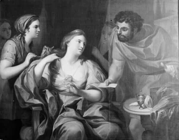 Carlo Cignani's painting, Joseph and Potiphar's Wife, presents a dramatic encounter through its dynamic composition and chiaroscuro lighting. The canvas is dominated by two figures caught in a moment of intense conflict. The artist masterfully uses light and shadow to emphasize the emotional tension, drawing our eyes to Potiphar's wife's grabbing gesture and Joseph's defensive pose. The stark contrast between the illuminated flesh tones and the dark background creates a theatrical effect, highlighting the moral struggle at play. Cignani's use of diagonal lines adds to the sense of unease, destabilizing any static interpretation of power dynamics. Consider how Cignani employs the visual language of Baroque art not just for aesthetic appeal, but as a means of exploring themes of temptation, resistance, and the disruption of social order. The painting invites us to reflect on how representations of morality and desire are constructed through visual forms, and how these forms challenge fixed ideas about virtue and vice.