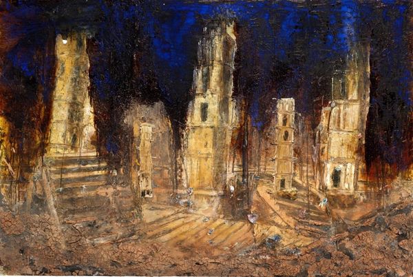 Editor: This watercolor piece is called "The Destruction of Pompeii," by David Roberts. There's no exact date. I am struck by its chaos – the broken architecture, the figures in distress. What historical narratives are embedded in this work? Curator: Absolutely, and it’s important to remember that representations of historical events are never neutral. They reflect the artist’s, and often the broader culture’s, contemporary concerns. So, in depicting Pompeii, what sociopolitical messages might Roberts be trying to communicate to his 19th-century British audience? Editor: Maybe a commentary on the fragility of empires, or perhaps a warning against complacency? The British Empire was at its height. I suppose it could be a cautionary tale. Curator: Exactly! Think about the power dynamics inherent in disaster imagery. Who gets remembered? Who gets to tell the story? Consider, too, the aesthetic choices. Why depict the scene with such dramatic flair? How might this romanticized view overshadow the real suffering of those who perished? Editor: So, it’s not just about the historical event itself, but how the artist uses that event to speak to their own time, and possibly reinforce existing power structures. Curator: Precisely. The artist’s role isn’t merely to depict, but to interpret and, consciously or unconsciously, to shape our understanding of history. Looking at Roberts' depiction of chaos, we also see what could be argued as beauty. Can something terrible be seen as magnificent, and is this ethical? Editor: This has really challenged my initial reaction to just seeing chaos. I am now going to look at artworks more critically and always think of them as cultural products and political statements. Curator: I'm happy to have opened your eyes. Keep in mind who and what is included, who and what is not included, and whose vision this is!