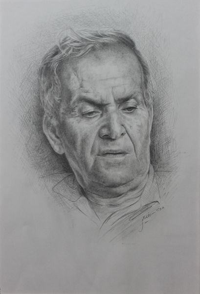 Reza Rahimi Lasko drew this 60 by 45 cm portrait of a man with graphite, and there's a real sensitivity to the mark making here. It's like watching a thought unfold. I'm struck by the way the artist uses line to create a sense of volume and light. The soft gradations of tone around the nose and cheekbone, achieved with delicate, almost hesitant strokes, give the face a palpable weight. You can almost feel the texture of the paper, grounding the image in its material reality. Look at the hair, how each strand seems carefully placed, yet the overall effect is one of natural disarray. It reminds me of some of the old masters, like Da Vinci. This piece feels like a quiet meditation on the human condition, an exploration of inner thoughts and emotions through the language of line and form. Ultimately, art is about connection and the exchange of ideas across time. It invites us to bring our own experiences and interpretations to the table, creating a rich and ever-evolving dialogue.