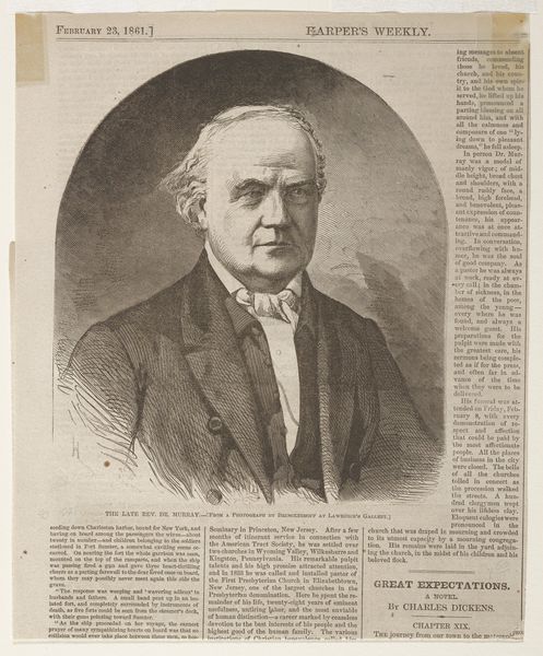 Curator: Here we have an engraving of Captain Robert Bennet Forbes from 1859, printed in Ballou’s Pictorial and attributed to Winslow Homer, though it was a collaborative work. Editor: The portrait's starkness and linearity catch the eye; it feels almost like a blueprint rather than a romanticized image of a man. Curator: Exactly. Wood engravings like this one played a significant role in mass media at the time. Publications like Ballou’s Pictorial aimed for broad appeal, and inexpensive prints were central to their mission of informing and entertaining the public. Editor: So, you are suggesting the means of production—a collaborative process designed for a large audience—are as important as, or more so than, individual artistry here? Curator: Precisely. It's important to understand how social and technological factors influenced image making. Consider how engravings democratized representation and fostered collective identity in 19th-century America. Editor: That makes me wonder about the skilled laborers who carved these blocks, translating drawings into tangible objects through repetitive work; a connection between manual skill and image dissemination. Curator: Right. The rise of the illustrated press created employment opportunities, but those craftspeople remain largely anonymous. That reminds us that behind every celebrated artwork there is a web of interconnected work and expertise. Editor: And even Captain Forbes himself is part of this economy. Not just as a subject but as an embodiment of commerce and enterprise! Curator: True! By situating this image in its proper historical and technological setting, it tells a complex tale about ambition, progress, and representation. Editor: Viewing it this way allows one to recognize both the historical roots and production that often shape our visual culture, and gives credit to unrecognized labour. Curator: Indeed, recognizing it in its proper setting, can give it new life and additional meanings. Editor: Exactly. A more profound respect.