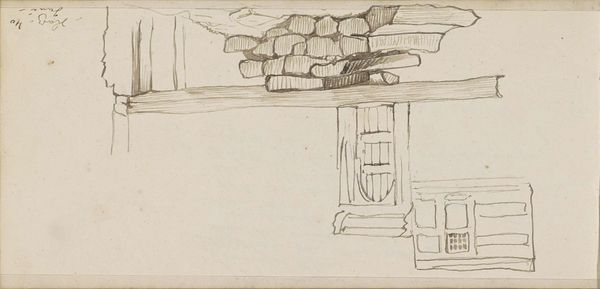 Curator: Here we have Nicholas Roerich's sketch, "Terem of Yaroslavna," created using pencil on paper. Editor: The immediate impression is… spare. Almost austere. The stark lines create a sense of interior space that feels both empty and charged with a quiet energy. Curator: Roerich, known for his interest in Russian history and spirituality, was likely sketching an imagined interior for Yaroslavna, a character from Igor's Tale. Consider the historical context: the "Terem" traditionally signified the upper chamber in wealthy households, often associated with women. Editor: Yes, but structurally, the strong geometric forms command my attention first: the linear architecture is precise, from the tiered ceiling features, with hanging details, to the sharp angles of the walls. Notice also the two, symmetrical, spherical details placed higher on the back wall. Their meaning escapes me, but their placement brings balance. Curator: This sketch highlights the social hierarchy of old Russia and its architectural influences on daily life and how the elite classes lived. Roerich wasn't just presenting pretty pictures; his work was deeply rooted in his understanding of cultural heritage, folk life, and its place in contemporary society. He saw art as a powerful agent. Editor: While you discuss the social ramifications, I cannot ignore that striking band of ornament along the back wall. Linear carvings, almost hieroglyphic, they suggest another realm beyond functional architecture. I appreciate how the details and geometry contribute to the overall feeling. Curator: I find it significant that Roerich selected Yaroslavna as his subject. What did his interest mean for modern audiences of the time? The "Tale of Igor’s Campaign" was central to ideas of nationalism, and revisiting this moment gave power to this mythical, lonely, figure in this intimate place. Editor: Both the linear precision and sketch-like style create tension. This is why formalism reveals the layers that ultimately resonate; form gives power to content, no matter what the artist ultimately meant. Curator: Precisely. By visually translating the narrative, Roerich invited viewers to ponder our collective memory, or lack of understanding, concerning gender and national heritage. Editor: Whether grand ideas or artistic construction were the ultimate intention here, “Terem of Yaroslavna” remains intriguing through its graphic representation.