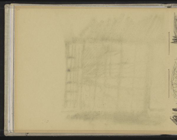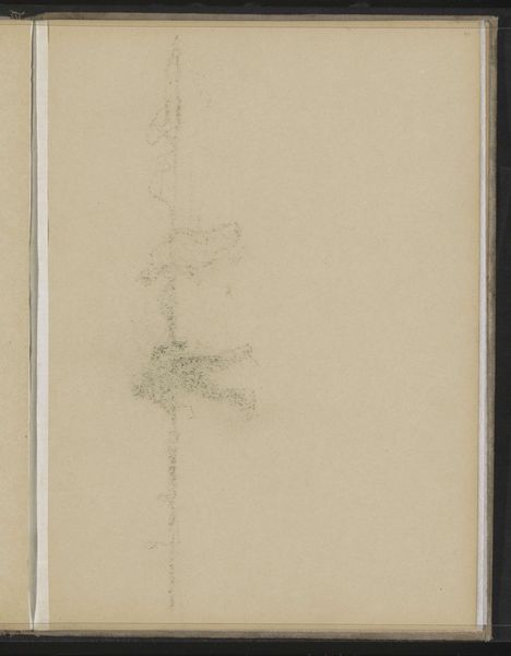 Curator: Looking at this work, it’s difficult not to feel a sense of unease. The sketch seems to capture a moment of disturbance, with blurred shapes evoking a spectral presence and unsettling implications about social structures. Editor: It strikes me more as an unfinished product, maybe even a mistake, a page left in a sketchbook. Curator: Actually, that’s part of the story. We’re looking at "Abklatsch," created by Willem Witsen around 1884 to 1887. It’s currently held in the Rijksmuseum, and it seems to be ink on aged paper, a page taken directly from one of his sketchbooks. The term "Abklatsch," meaning 'blot' or 'impression', is the name given to the practice when two sheets are pressed together. It looks like it captures more than the image of a place or a scene, don’t you think? Editor: It does raise questions about its intended purpose. Given it comes from a sketchbook, it could be simply a preparatory sketch, experimenting with perspective. Did Witsen see something in the accidental duplication? The use of ink suggests he did. There's a labor to that choice, and it changes the material context to deliberate mark-making. Curator: Exactly. The sketch-book itself becomes a record of artistic labor and its cultural role; who gets to record these scenes, whose perspectives and practices matter? Moreover, in that moment and that social position, who got to create in the first place? This image echoes broader themes of marginalized perspectives within societal landscapes. It forces me to look beyond Witsen himself, his intentions, or the technique on display, toward a bigger discussion of art and labor within the 19th century. Editor: But is that what’s evident when looking at it? Perhaps its artistic value is the exploration of the medium. I suppose that even this was still a craft involving labour and an artist honing their skill through practice. Curator: A valid point. The artistic skill embedded in the materiality is undeniably relevant and valuable when considering the work and, perhaps the point isn’t solely to examine identity or the intersectional contexts from which art emerges but rather, the intersection between artistic processes, identity and our understanding of labor in art production itself. Editor: Exactly, looking at the process can reveal many different intentions. It encourages multiple avenues for further discussions. Curator: It certainly does, prompting a continued investigation into how we construct, consume, and circulate narratives within our visual culture.