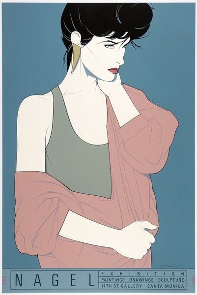 Hume’s Portraits is a series of ten screenprints commissioned by Charles Booth-Clibborn and published by him under his imprint, The Paragon Press, London. They were proofed and printed at Coriander Studio, London in an edition of thirty-six plus ten artist’s proofs. Tate’s copy is number eighteen in the edition. Each print was made using between three and fifteen colours and coated with several layers of varnish in sections. The varnish results in a sheer, glossy surface similar to that achieved by Hume’s use of household gloss paint in his paintings such as Incubus 1991 (Tate T07184) and Water Painting 1999 (Tate T07618). The prints are based on paintings Hume made between 1994 and 1998. Some of these paintings were derived from photographs, others from Hume’s imagination. Each print has a subtitle related to the original painting. This is the seventh image and its subtitle is Lady Parker. It is based on a much larger painting, Lady Parker (After Holbein) 1998 (Guy & Annushka Shani, London) in gloss paint on aluminium panel. It differs from other images in the series in consisting mainly of drawn lines on a flat monochrome pink background rather than areas of flat colour. In the painting the lines are grey; in the print they are pale blue, with a darker shade of blue used to delineate Lady Parker’s eyes. Two geometrically perfect black discs on either side of her face in the painting have been replaced by larger pale yellow discs on the print. These discs, possibly representing earrings, constitute the most radical aspect of Hume’s transformation of the original. As the painting’s subtitle explicates, the image is based on a portrait attributed to German-born painter and official portraitist in the court of King Henry VIII, Hans Holbein (the Younger, 1497-1543). Holbein’s drawing of Lady Parker (thought to be Lady Grace Parker, who was married to Sir Henry Parker in 1523 at the age of eight) is one of his most popular images available in reproduction. Hume has depicted her in renaissance costume in the style of drawing typical to contemporary cartoons or fashion drawing.