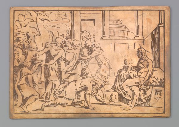 Philipp Veit painted ‘Athena bei der mit Webereien beschäftigten Penelope’ using a monochromatic palette of muted ochre and stark black, creating a visually striking composition. The frieze-like arrangement of figures evokes classical Greek vase painting, lending the scene an air of timelessness. The linear precision and stark contrast invite us to decode the underlying structure of the artwork. The division between light and shadow creates an interplay that emphasizes form and volume. The women, frozen in a tableau, are archetypes representing themes of wisdom, domesticity, and perseverance. The weaving itself becomes a sign, symbolizing not just labor but also the intricate narrative of Penelope's life. The figures are arranged to convey a sense of order. Veit’s strategic use of the monochromatic palette isn't merely aesthetic, but philosophical. It prompts us to look beyond surface appearances. It encourages us to interpret the deeper structural meanings of the artwork and its relation to classical ideals.