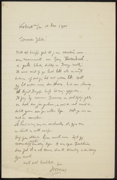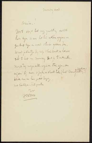 This letter, made by Jan Toorop, is a fantastic example of how writing can be art, and art can be writing. Look at the way the ink, probably from a fountain pen, dances across the page, almost like a flurry of tiny brushstrokes. The way he uses that dark ink on a lighter background reminds me of the importance of contrast in art – how the light and dark play off each other to create depth and interest. The density of the words, almost like a field of marks, makes you want to lean in, doesn’t it? He has used those soft pen marks to keep the form in motion and the meaning in-between the lines. Notice how the lines aren't perfectly straight, they curve and bend, giving a sense of movement and life to the words. The whole thing feels incredibly personal, you get a sense of Toorop’s energy, his way of thinking. This reminds me of Cy Twombly’s scribbled paintings, where the act of writing becomes a way of drawing, a way of expressing raw emotion. Both artists show us that art doesn’t always have to be polished and perfect; it can be messy, spontaneous, and full of life.