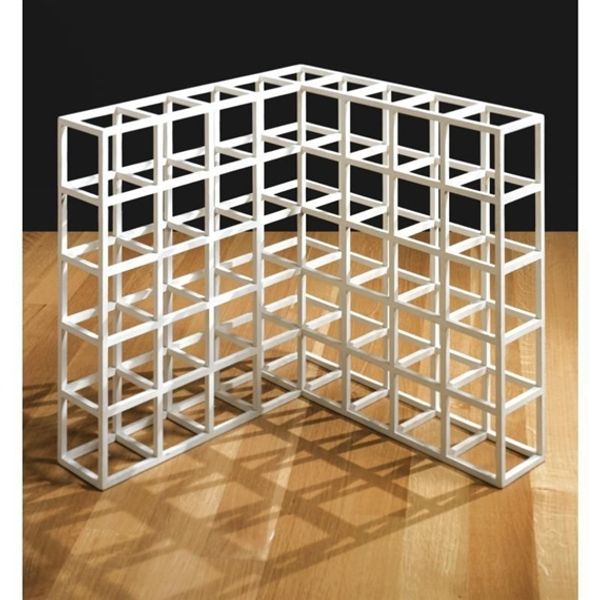 Editor: So, here we have Sol LeWitt’s "8 Part Cube" from 1975, a sculpture… well, more of a three-dimensional diagram, really. It’s interesting how the simplicity of the white cube is complicated by the interior structure. It seems to both reveal and conceal its own construction. What ideas do you think LeWitt was trying to explore? Curator: LeWitt was deeply engaged in challenging conventional ideas about what constitutes art. During the late 60s and 70s, the art world was questioning the role of the artist, the object, and even the gallery itself. Conceptual Art and Minimalism arose, in part, as responses to the perceived commodification of art, pushing back against abstract expressionism's emphasis on the artist's individual touch. This piece embodies that. It prioritizes the underlying concept, the idea of the cube, rather than a specific emotional or aesthetic experience. The cube is broken down, examined, almost diagrammed. Don't you agree that that structure questions institutional frameworks? Editor: I can definitely see that. It's like he's dissecting the very idea of a cube, removing any sense of monumentality. In doing so, he seems to question art's traditional role as something precious and unique, something to be passively admired. But why the focus on geometry? Curator: Geometry provided a vocabulary free from personal expression, a rational system accessible to all. This democratic approach aligns with the larger counter-cultural movements happening at the time, protesting against established hierarchies in the art world. LeWitt, in his writings, advocated for the artist as a kind of architect or engineer, someone who conceives an idea, which could then be fabricated by others. The concept is the art, and it should be openly available for anyone to interpret and realize. Doesn't that approach break down preconceived notions about the artist and how their work is made and received? Editor: Absolutely. I never thought about Minimalism as a counter-cultural statement, but it makes so much sense in that context. I used to see it as purely formal, about lines and shapes. Curator: It’s often been seen that way, particularly because museums themselves tend to isolate art from its original context. The institutional framework really shapes our perceptions. Seeing how these shapes come to life against social disruption provides additional depth. Editor: It really changes how I see LeWitt's cube, too. Thinking about the political context of the late '60s and early '70s, suddenly its rigid geometry feels charged with meaning. Curator: Precisely. Art and social history can work together.