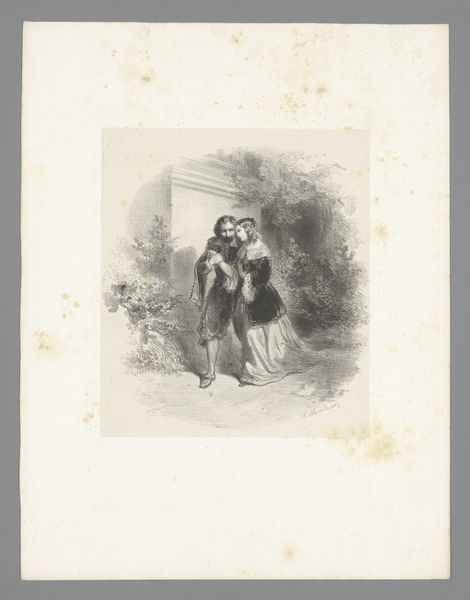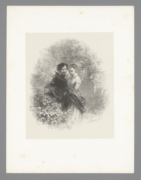 Editor: This engraving, titled "Two Young Women Sitting Side by Side," was created by Adolphe Mouilleron sometime between 1830 and 1880. It's a delicate, intimate portrait. The women appear to be sharing a secret, and the detail in their clothing is remarkable. What story do you think it is telling? Curator: The artwork reflects a particular sensibility within 19th-century portraiture. Romanticism emphasized emotion, and this piece certainly captures that. What’s striking is how these intimate portrayals of women functioned in the public sphere. Engravings like this were widely reproduced and circulated. Considering its place in the Rijksmuseum, how does exhibiting this artwork now reshape or challenge its original function as a domestic scene? Editor: That’s a great point. In a museum setting, it definitely prompts a different kind of observation. Knowing these prints were widely available changes how I see their purpose. Instead of being personal, they become almost like advertisements for…what exactly? Curator: Precisely. For ideas about femininity, domesticity, even class. These images circulated ideas about the role of women in society. Think about the social context of the time; the rise of a consumer culture, the development of mass media. What is conveyed is perhaps less about the individual women portrayed, but more about societal ideals and expectations projected onto them. Who consumes such images, and how does that influence its display? Editor: So, is the museum display actually contributing to that same consumption pattern? Or, is there a way we can challenge that? It sounds like the act of viewing has the power to rewrite the historical role of this picture? Curator: Exactly. Placing the image in dialogue with other artworks from the same era might expose underlying power structures that define relationships and reveal nuanced social commentary. Now I am considering reframing other pieces in our collection. Thanks for that insight! Editor: This conversation has highlighted just how many layers can be unpacked when viewing historical art through a modern lens! I’m eager to explore the context behind art further.