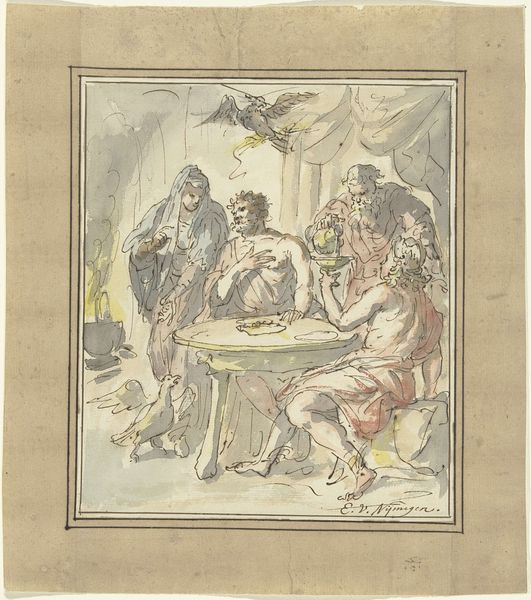 Hossein Behzad painted this miniature, titled "Zakaria Razi," in 1954, capturing a scene imbued with symbols of knowledge and transformation. The central figure, likely Razi himself, is surrounded by alchemical instruments, each flask and vial representing elements of the natural world waiting to be understood and manipulated. Notice the books scattered on the floor. They evoke a sense of ancient wisdom. The act of transforming base metals into gold— a central aim of alchemy—mirrors the quest for spiritual enlightenment. Just as the alchemists sought to purify substances, they also sought to refine their own souls. Think of how similar motifs are used in Medieval art where biblical characters were portrayed mixing elixirs, seeking healing, and finding a metaphor for personal and collective redemption. These visual echoes remind us that the desire for transformation is a constant thread woven through the tapestry of human history.