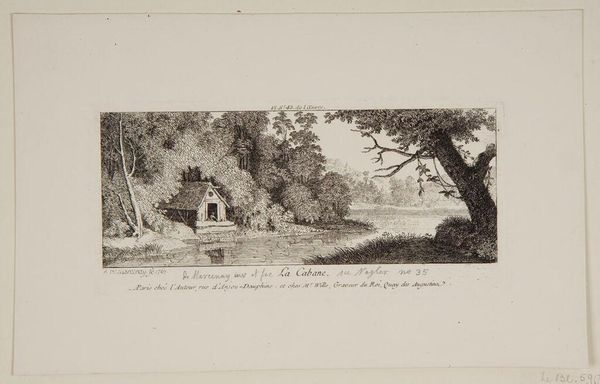 Editor: This is Louis Marvy's "The Death of Brother Schroepfer," and the date on the print says 1774. It’s quite a dramatic scene. What do you see in this piece? Curator: This image stages a suicide as a public event, doesn't it? Schroepfer, a figure associated with mysticism, becomes a spectacle. Consider how this performance, documented by Marvy, speaks to anxieties around Enlightenment rationality versus occult beliefs. Editor: So, it’s more than just a historical record? Curator: Exactly. It's about power, knowledge, and the policing of belief. Who gets to define "truth," and what are the consequences for those who deviate? What do you think about the landscape in this print? Editor: It's interesting how the trees seem to be both witnesses and almost complicit in the event. I never considered the sociopolitical implications of landscape art before. Curator: Seeing this through an intersectional lens illuminates the power dynamics at play and, hopefully, challenges us to question dominant narratives.